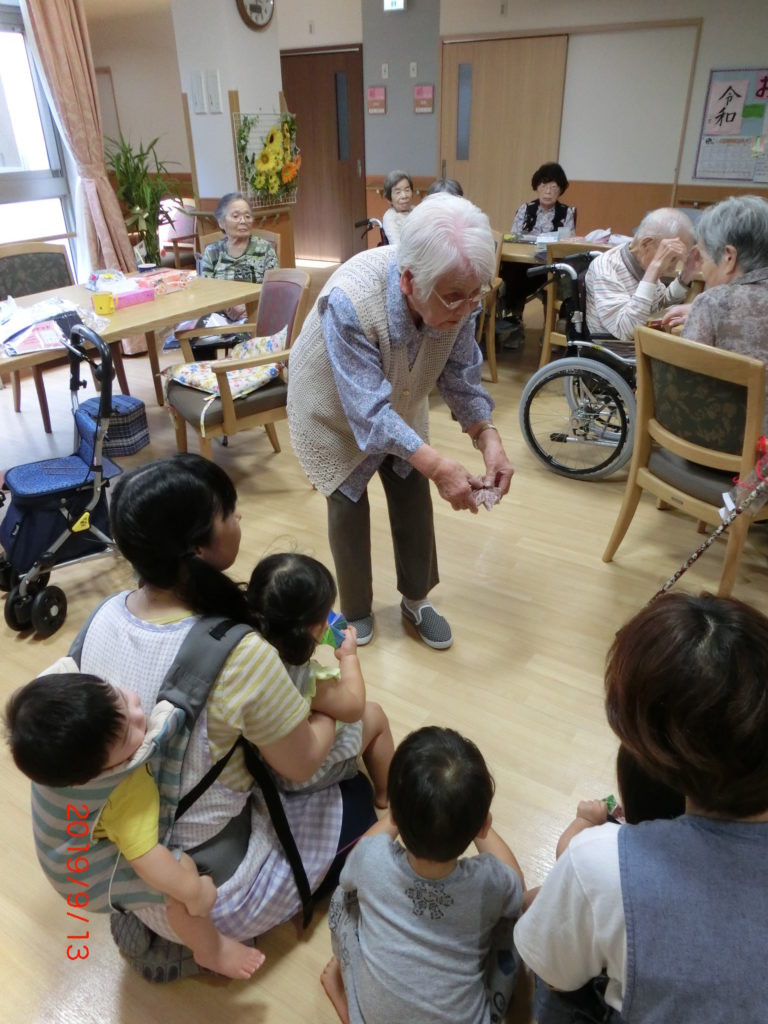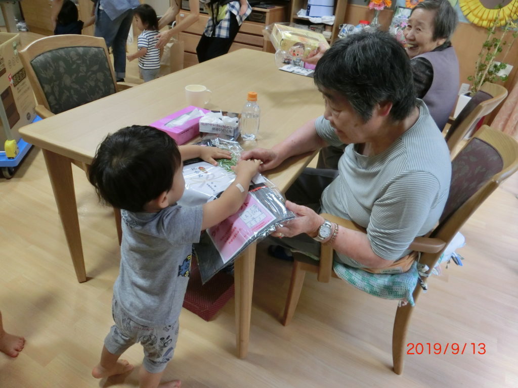 「おじいちゃん、おばあちゃん、いつまでもお元気でいてください!」との元気な言葉に皆さん大変喜ばれていました。