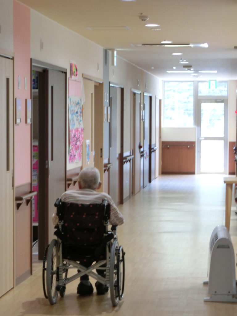 こちらの方は車椅子で日課の散歩をされています。すれ違う職員にも気さくに挨拶をしてくださいます。