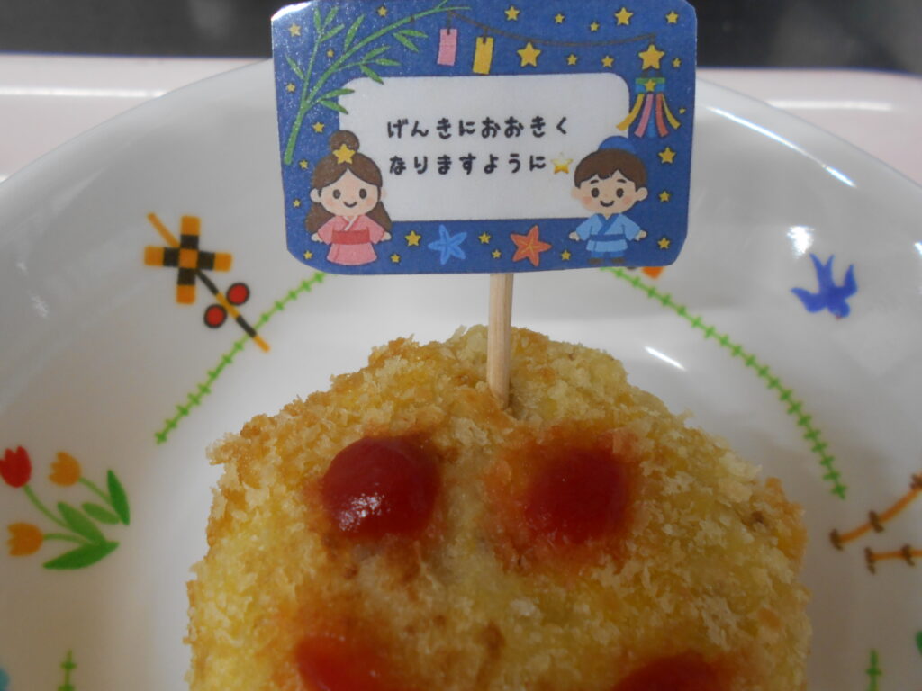 コロッケには、「げんきにおおきくなりますように・・★」とお願い事を付けてみました!