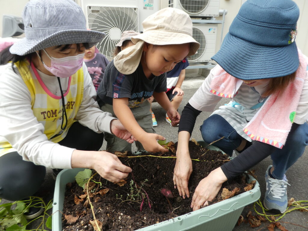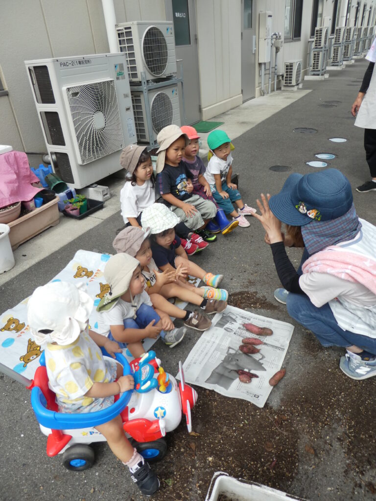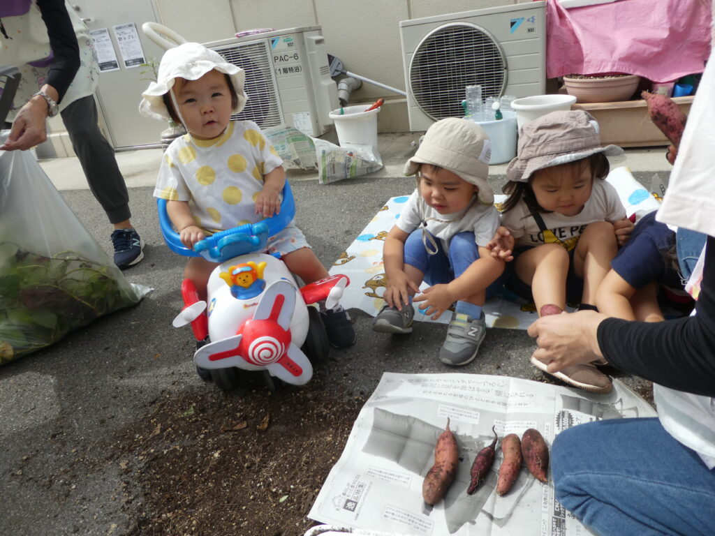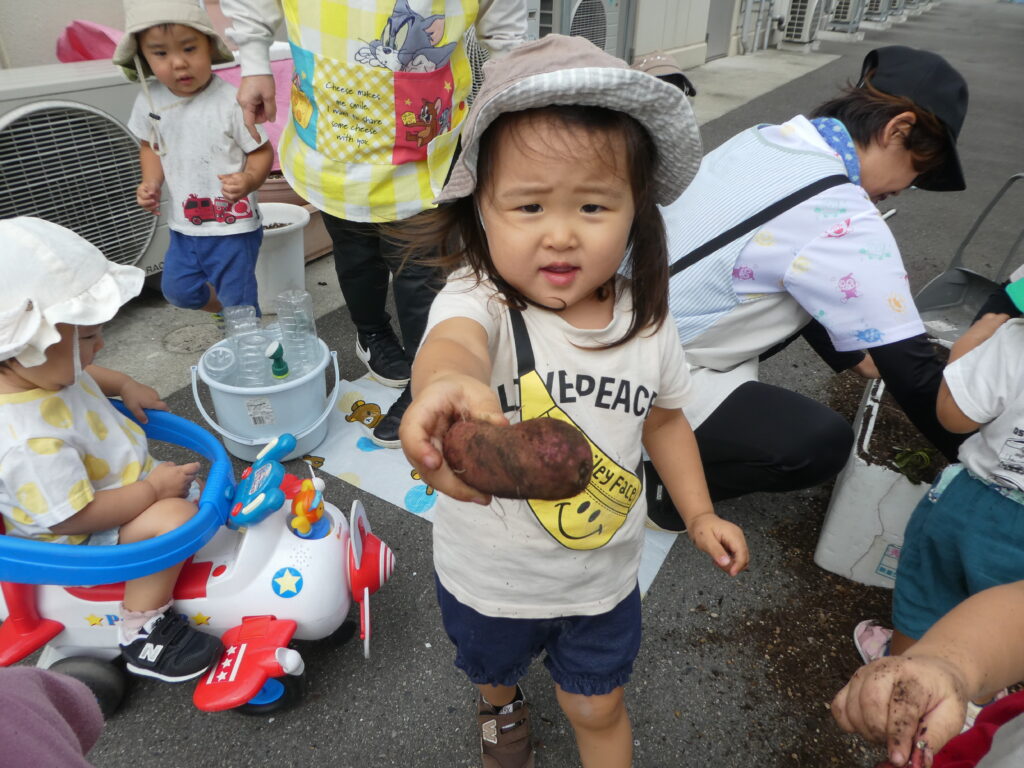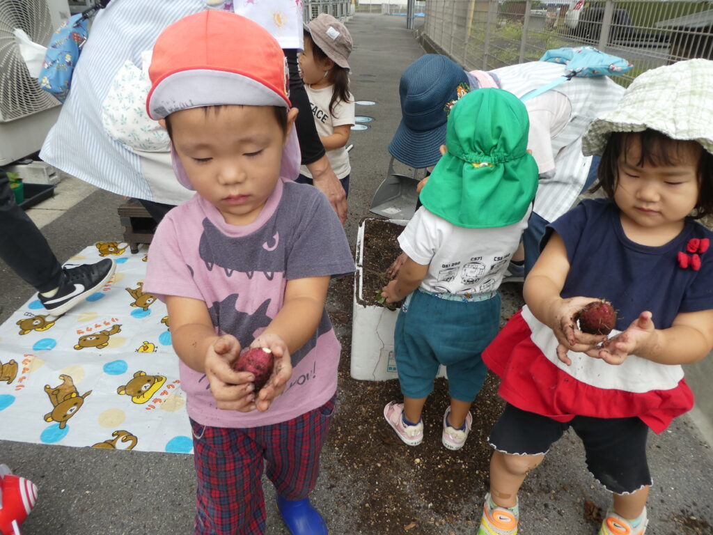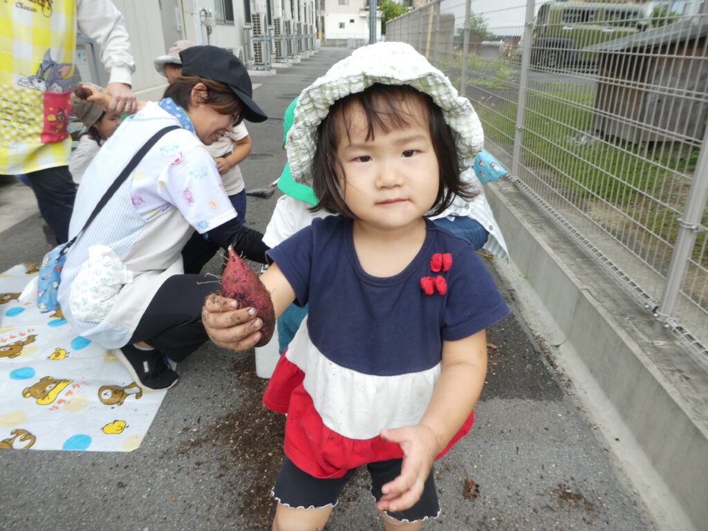 今日はみんなで植えたさつま芋を収穫しました。どんなさつま芋ができたかな???と言いながら、部屋で一度収穫の練習をして出ました😊
