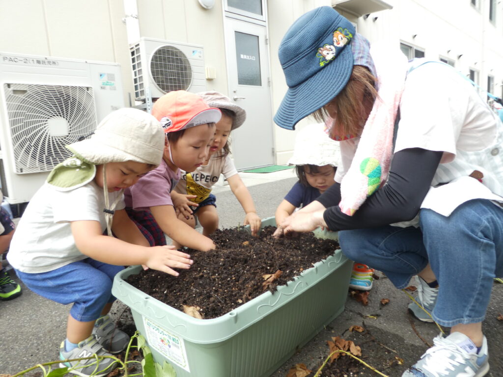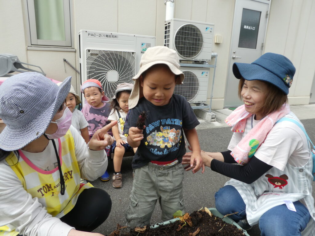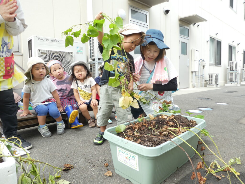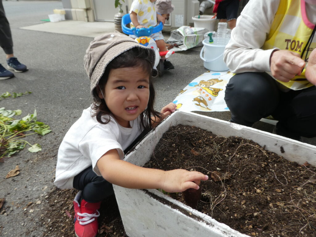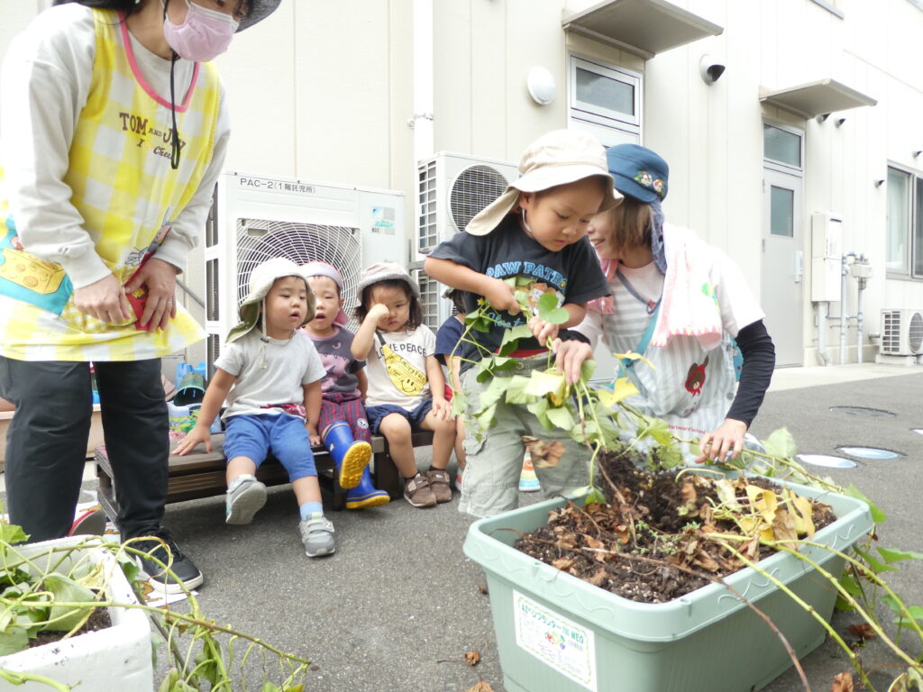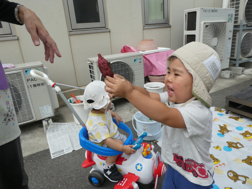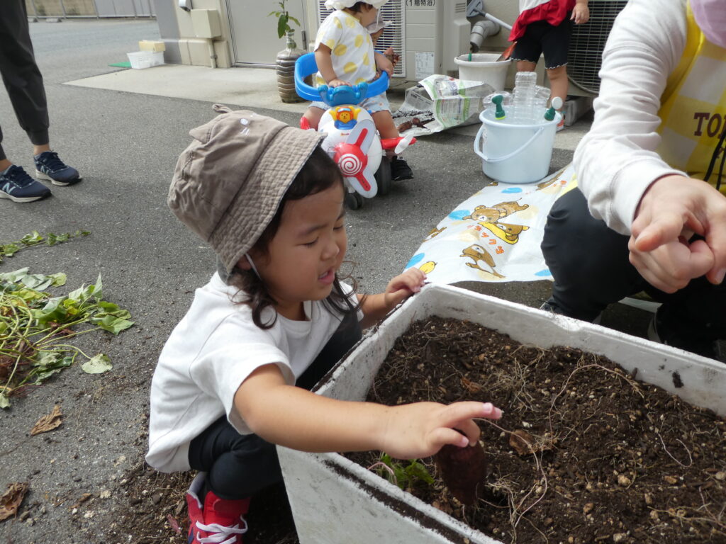 今日はみんなで植えたさつま芋を収穫しました。どんなさつま芋ができたかな???と言いながら、部屋で一度収穫の練習をして出ました😊