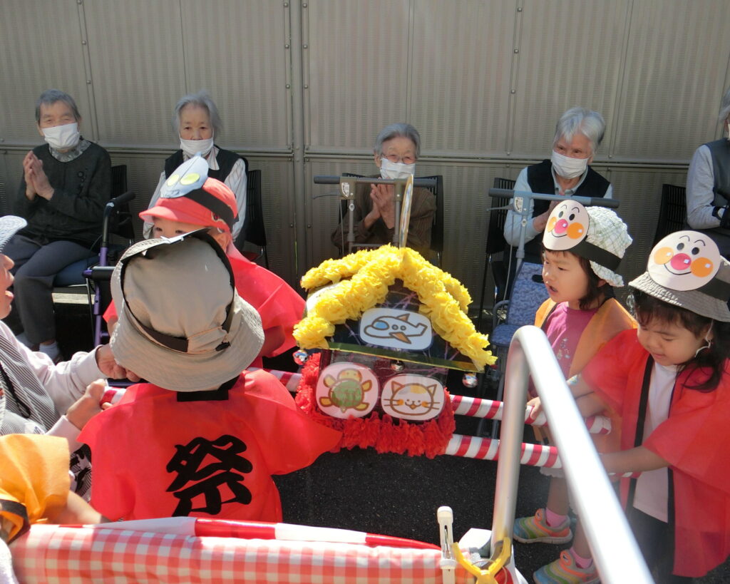 入居者の皆様、かわいい子どもたちに笑顔いっぱいで出迎えて下さいました(^^♪