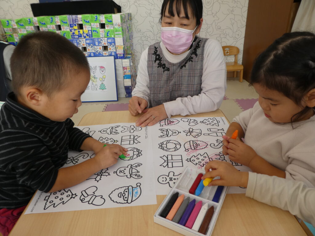 クリスマスツリーの飾りつけ🎄⭐ 今日はクリスマス会に向けて、塗り絵をしました。 その後、みんなでクリスマスツリーの飾りつけをしました⭐😊 飾り終えた後、クリスマスの曲に合わせて、歌も歌いました。子ども達はウキウキです💕 ⭐飾りつけ⭐ 素敵なツリーになりました🎄💕 ツムギ2025-11-19T12:45:36+09:002025年11月19日|