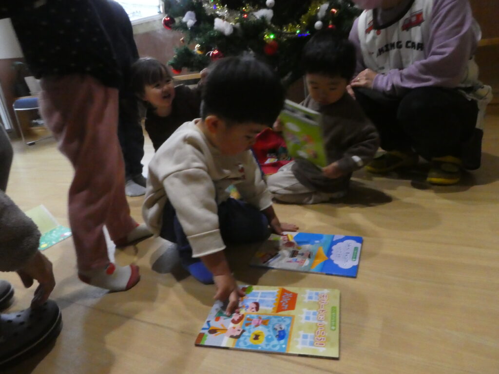 プレゼント第二弾⭐🎅 お昼寝から起きると、何と大きなツリーの所へ、サンタさんからのお手紙付きでプレゼントが置いてありました🤩🎁 中身はかわいい絵本が沢山🎶またみんなで見ようね😊 サンタさんありがとう🎅⭐ ツムギ2025-12-24T15:51:54+09:002025年12月24日|