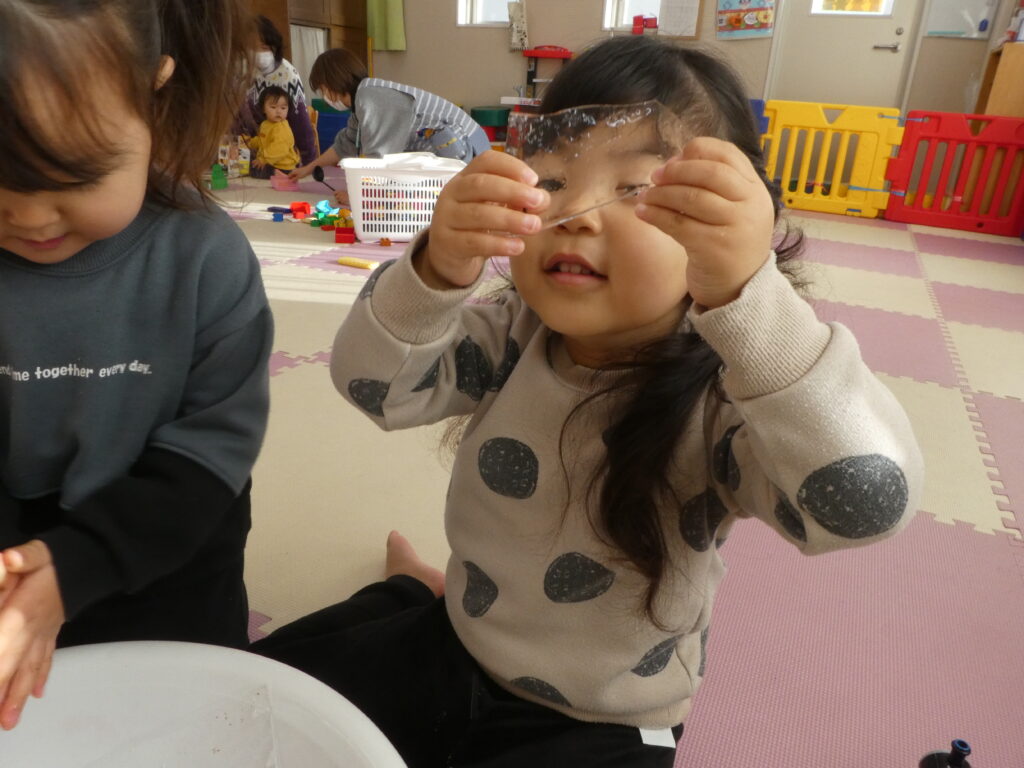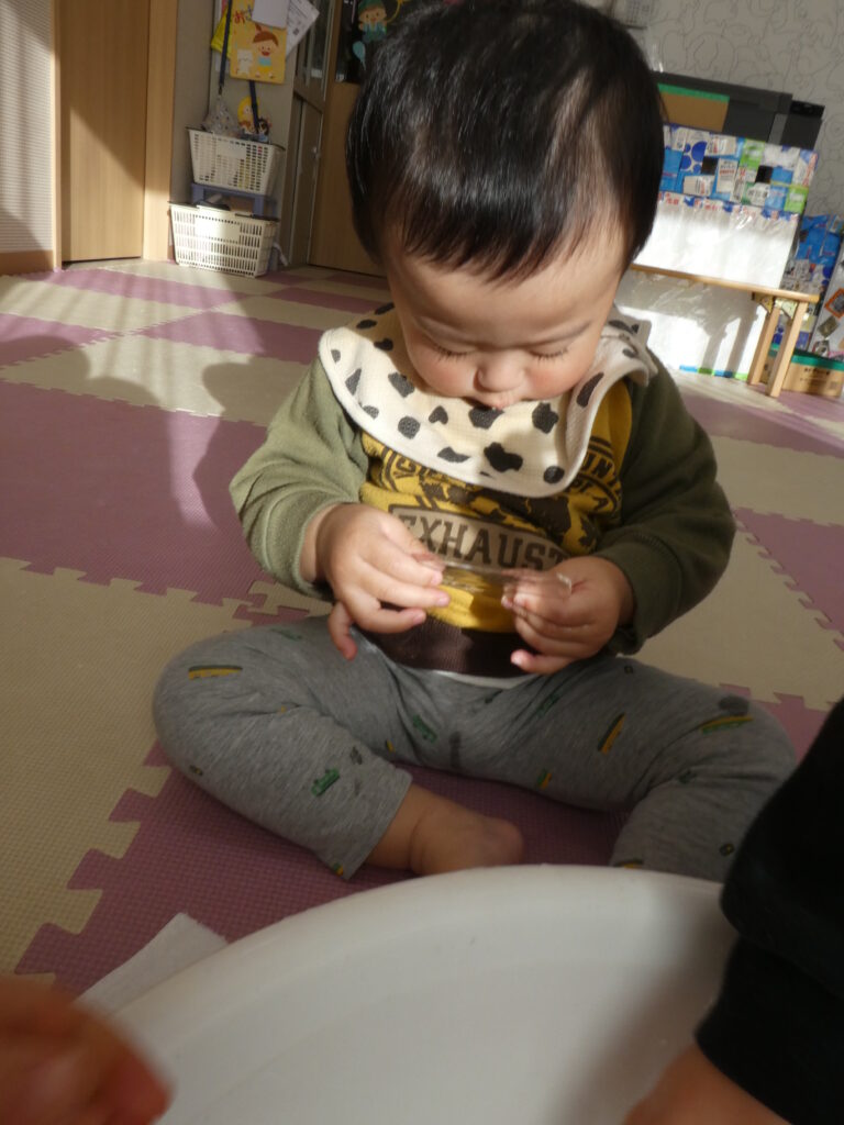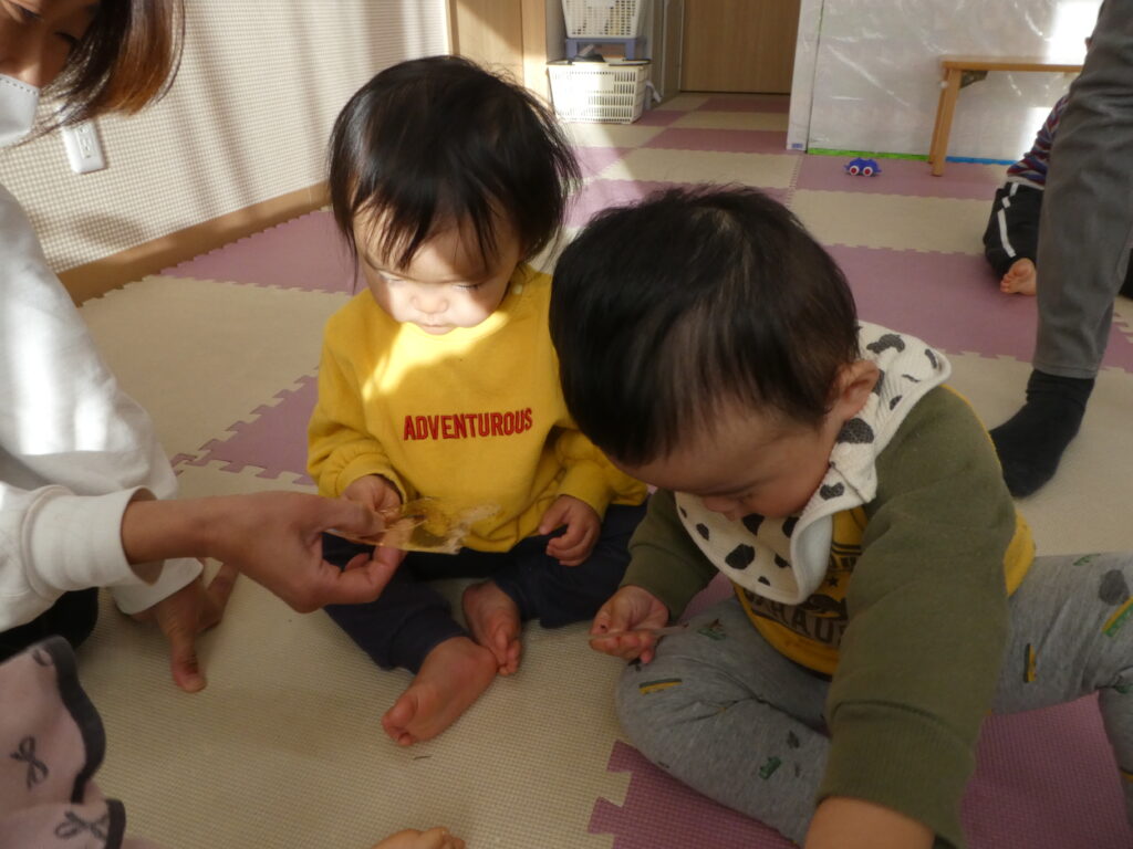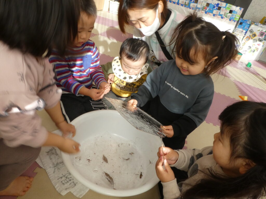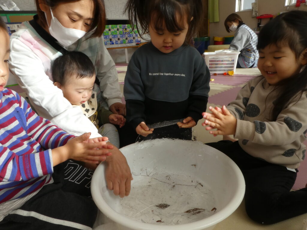 朝とっても寒く、氷がはっていましたね。部屋へ入れ、少し触ってみました。