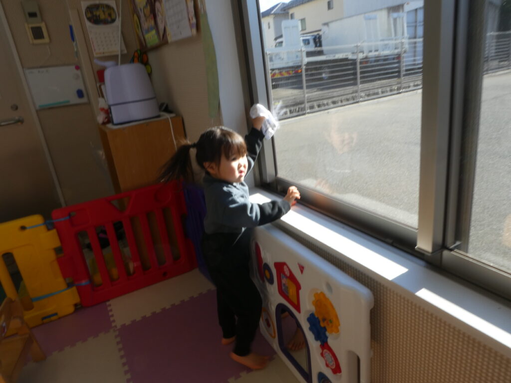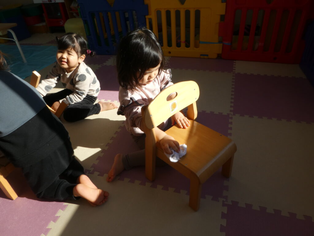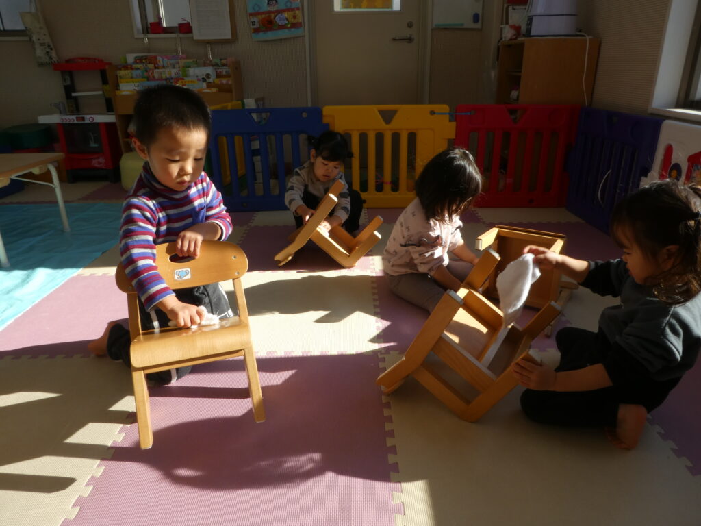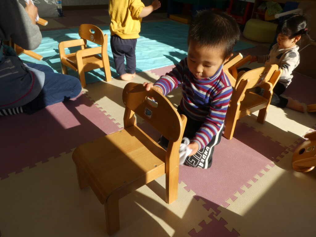 その後、キッズでは、みんなで大掃除をしました。クリスマスツリーを片付けたり、窓ふきをしたり、みんなが使っている椅子や机を磨いたりして、新年を気持ち良く過ごせるようにしました😊