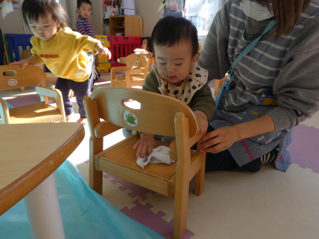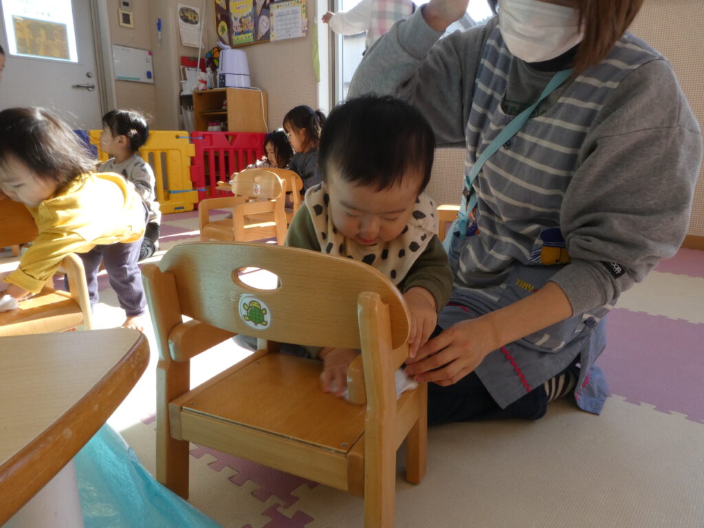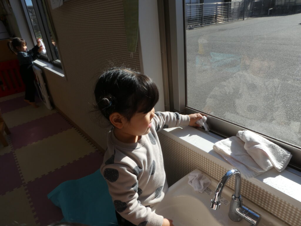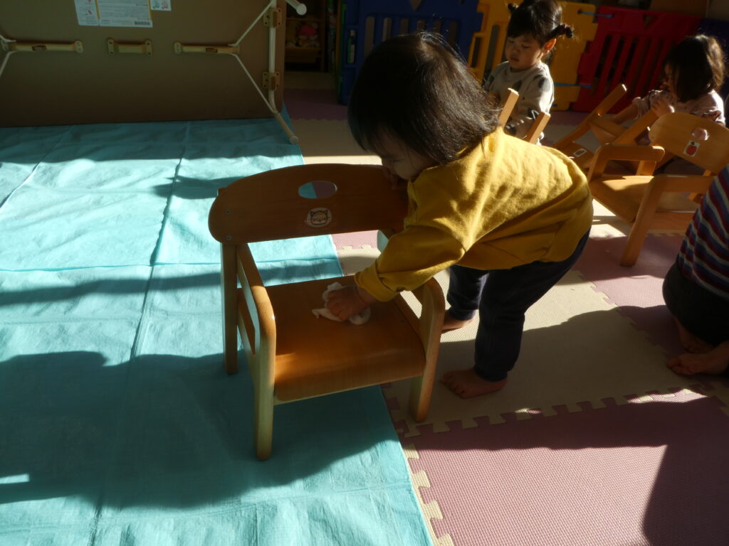 その後、キッズでは、みんなで大掃除をしました。クリスマスツリーを片付けたり、窓ふきをしたり、みんなが使っている椅子や机を磨いたりして、新年を気持ち良く過ごせるようにしました😊