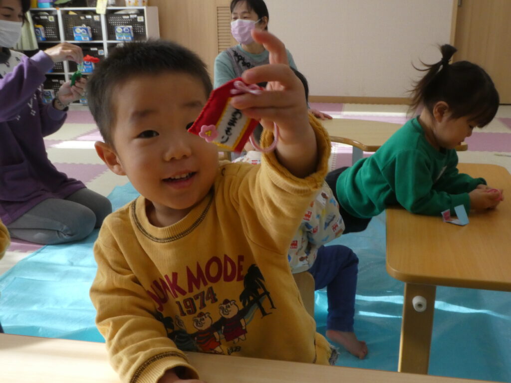 さて、キッズでは、5日に近くの神社へ初詣に行き、6日にはおみくじをひいたり、お守りを貰ったり、コマ回しをして過ごしました😊