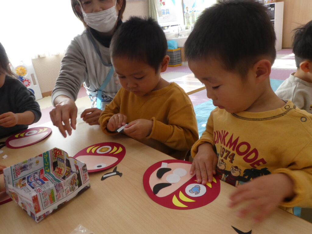 お正月遊び part2 昨日した福笑いを今日はだるまでしてみました😄 それぞれかわいいだるまになりました♥️ 凧揚げ 風もあり、楽しい凧あげになりました😊 お正月遊び、まだまだ続きます🎶🎍 ツムギ2026-01-08T14:46:00+09:002026年01月8日|