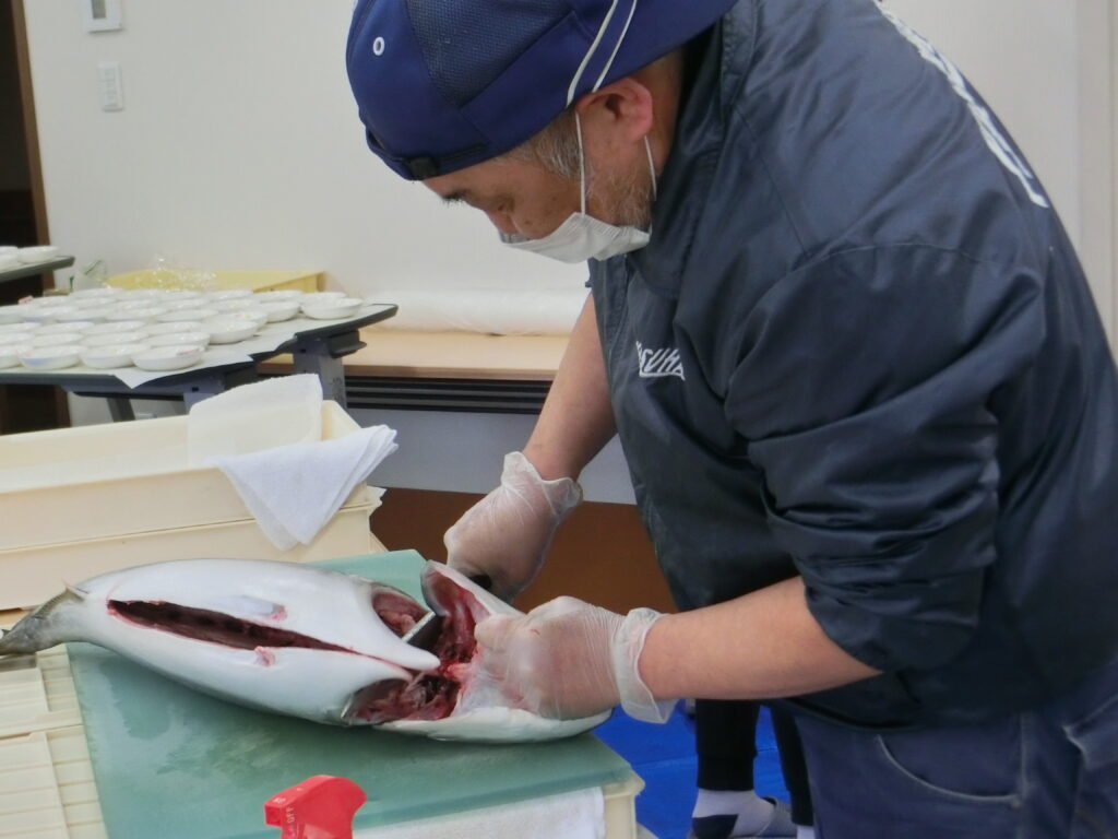 立派なブリの登場に皆様の目が輝いている中、解体ショーが始まりました!!