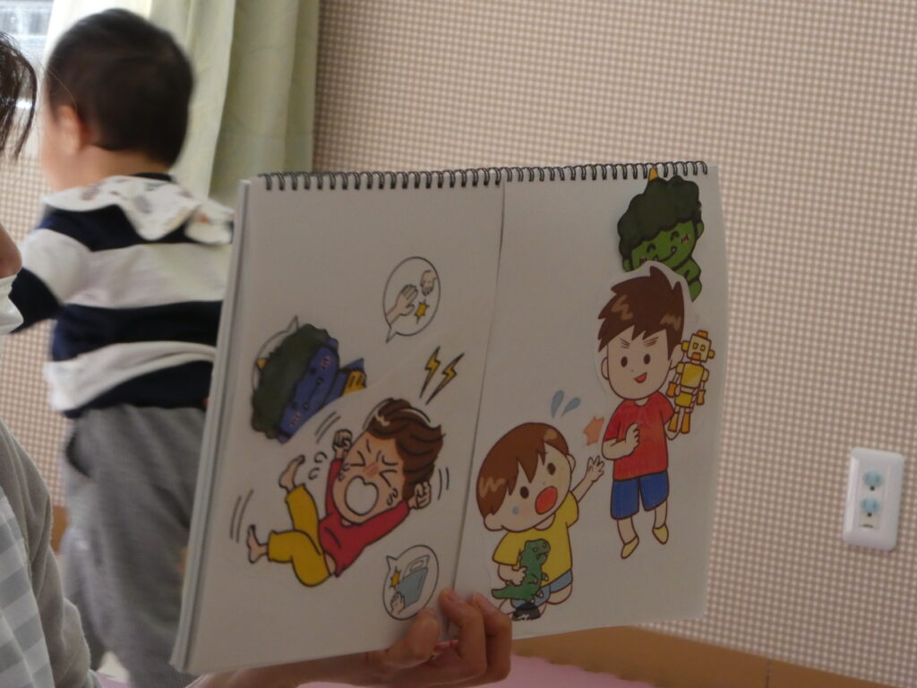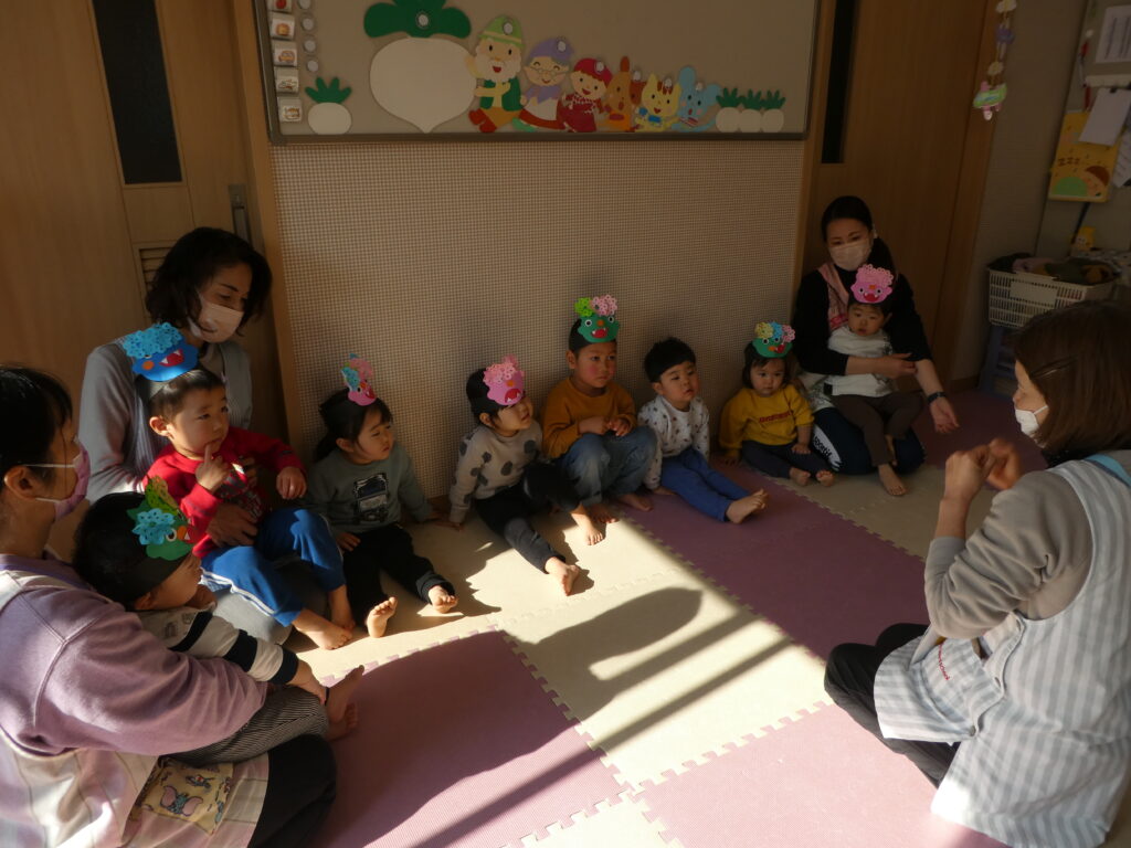 みんなの心の中に、”泣き虫鬼”や”怒りんぼ鬼”、”意地悪鬼”はいないかな?と節分についてのお話がありました。