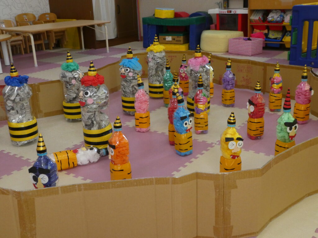 ペットボトルの鬼を倒して、「やった~~」と言っていたのですが、窓の外を見ると。。。まだ鬼が残っていました!!!😣