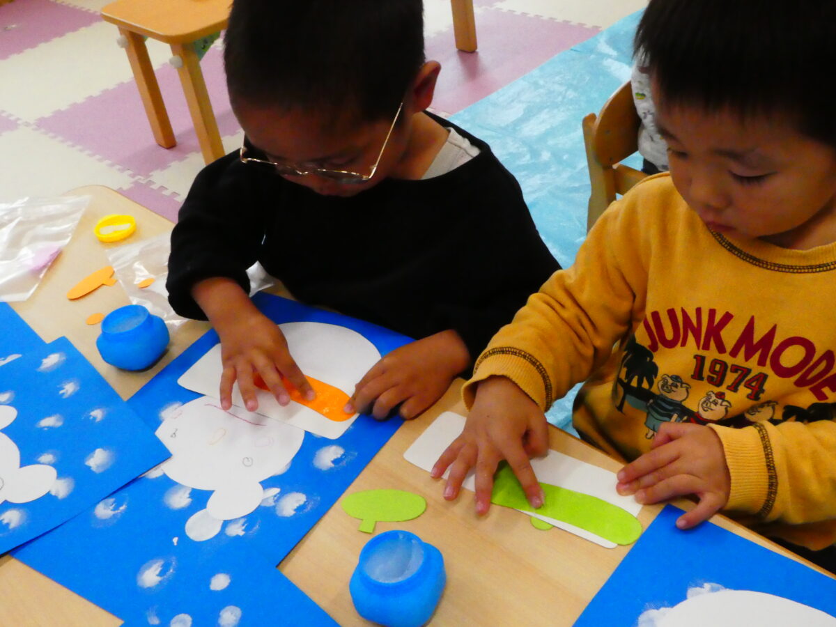 糊付けが苦手だった子も、糊をたっぷりつけてしまっていた子も、今では付け方も上手になり製作を楽しめるようになっています😊