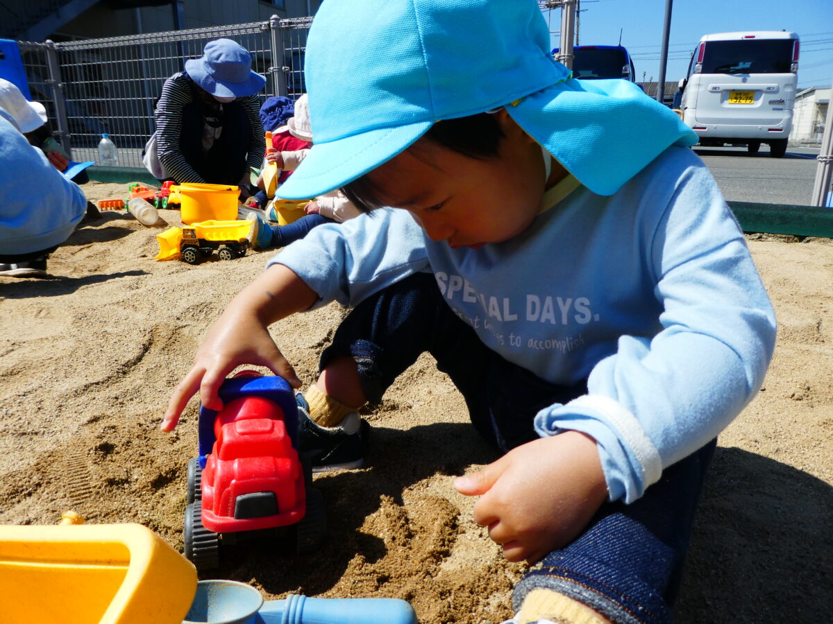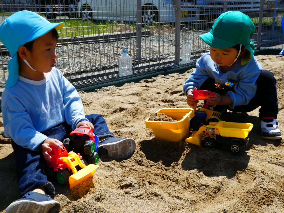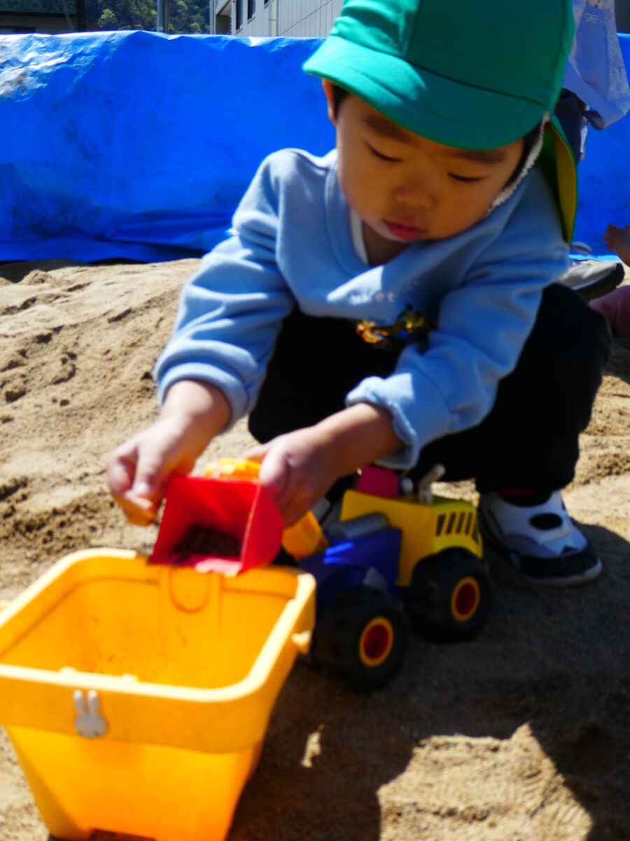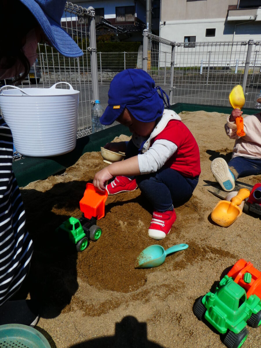 今日は砂場で遊びました。好きな玩具を手に取り、思い思いに砂場遊びを楽しんでいましたよ😊
